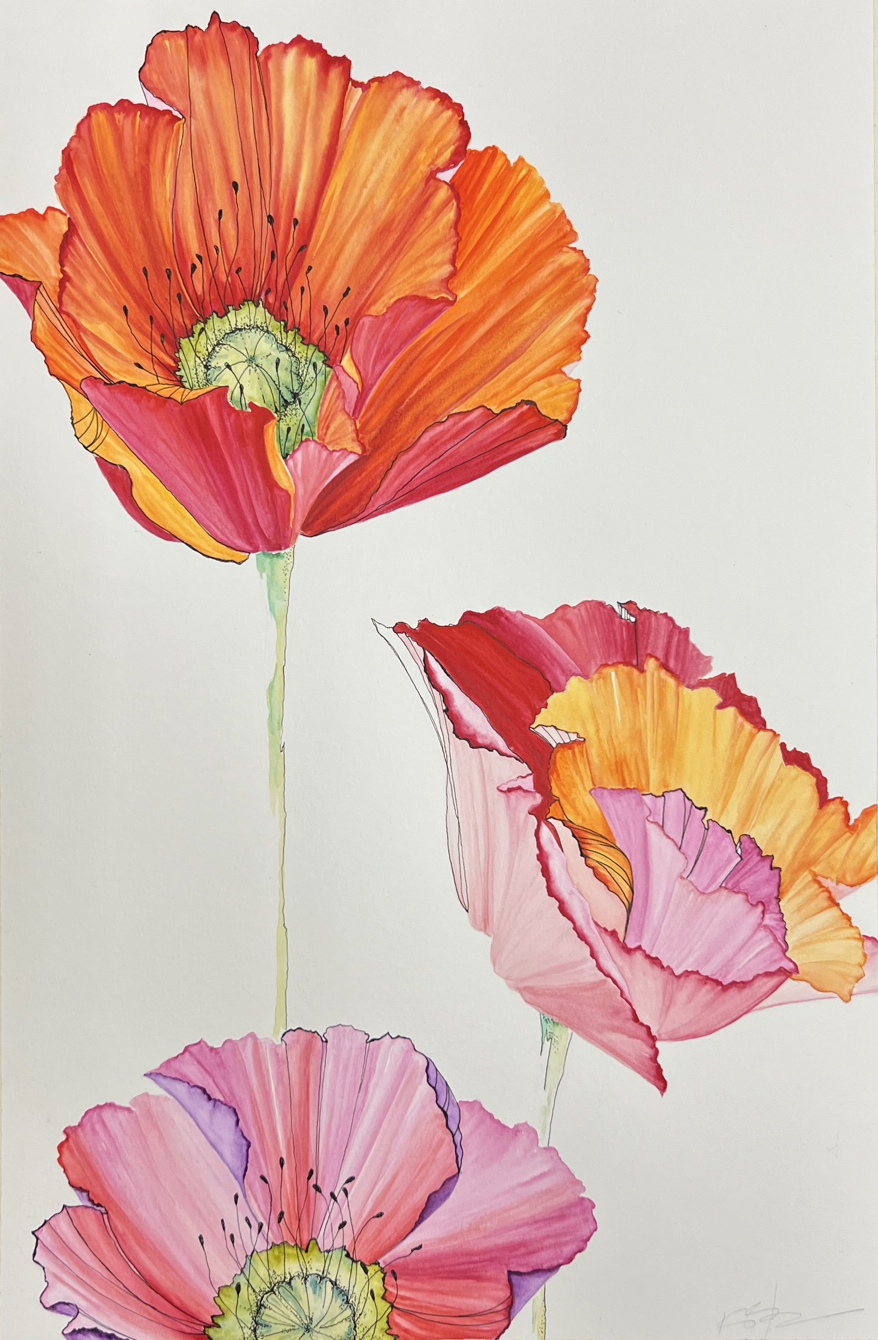 Poppies 1, 2021. Watercolor on paper. 22"x30" SOLD