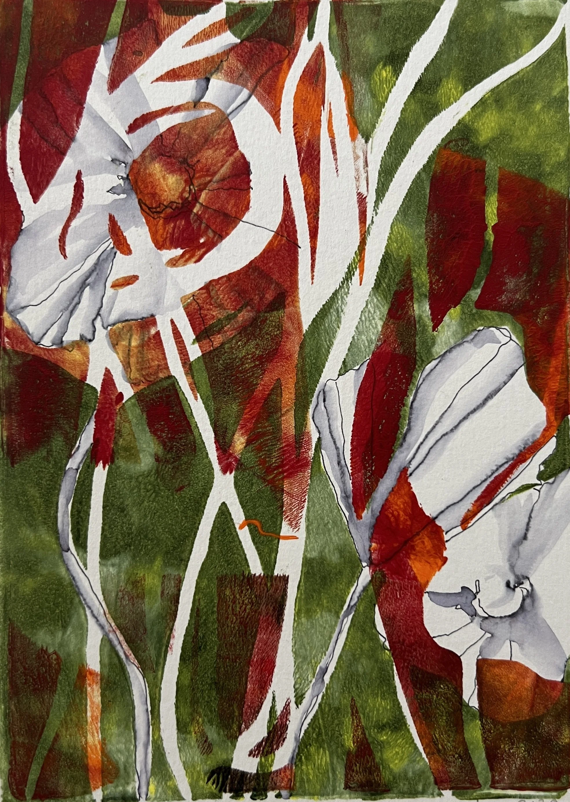 Poppy (2), 2021. Mono print on paper, 7" x 5" $150.00